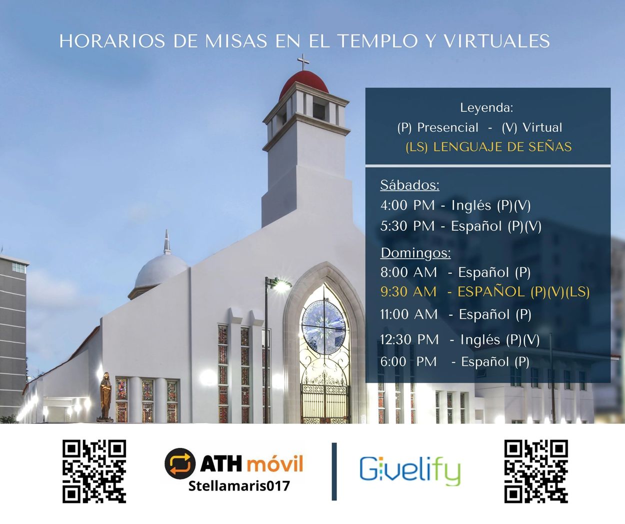 Hispanic Ministry Misas en Espa ñ ol. You may make a one-time donation today using the Donate Now button while knowing that your contributions will be processed for Normal Operation costs or for the New Church loan payment as indicated by you on the notes of your donation. Our parish is grateful for your continued financial support.